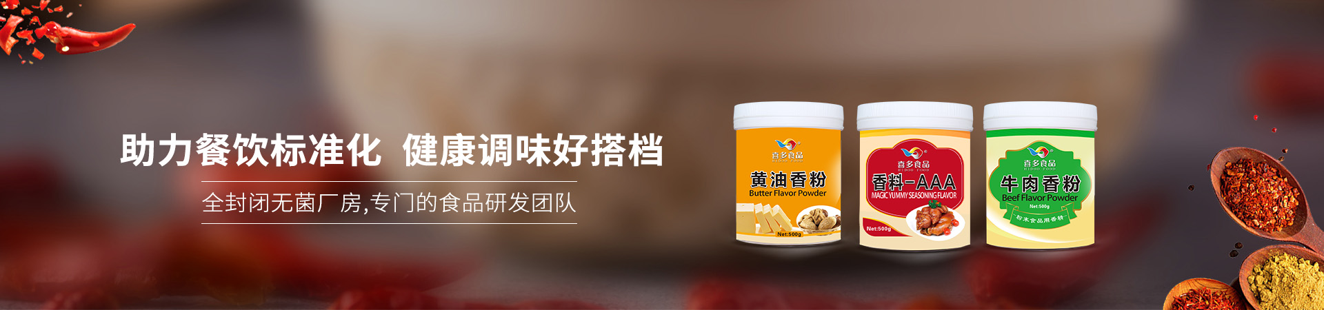 欢迎来到青岛喜多食品配料有限公司官网!本公司主营调味料及香精产品,涵盖粉状、液体、膏状等各种剂型